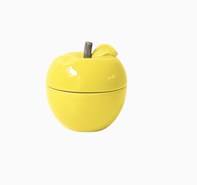 Bougie coulée à la main dans une boîte en céramique en forme de pomme, inspirée des années 1980. Un objet qui mêle douceur, authenticité et nostalgie irresistible. Ajoutez une touche design à votre intérieur avec notre bougie coulée dans une boîte en céramique en forme de pomme. Déclinée en une palette de couleurs douces et modernes, elle s’intègre parfaitement à tout style. Une fois consumée, réutilisez-la comme objet déco ou petit contenant. Une pièce chic et intemporelle, idéale pour offrir ou se faire plaisir.