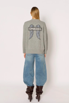 Le cardigan MINAWINGS séduit par son allure casual chic et ses détails signature. Confectionné en laine douce, il présente une coupe longue, un col V élégant et des poches plaquées pratiques. Dans le dos, des ailes en strass apportent une touche rock et lumineuse, parfaite pour revisiter un look simple.