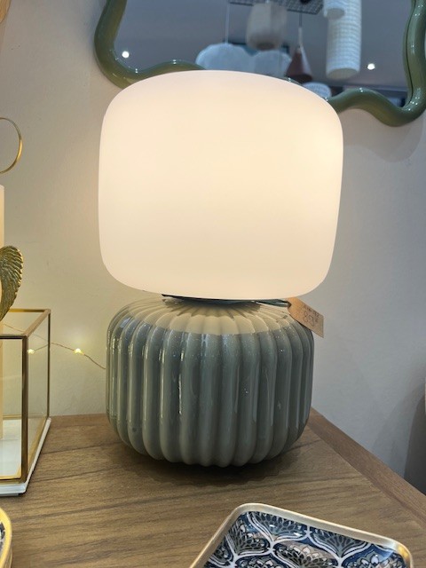 Lampe de chevet "Ninon Olive" alliant verre opalin et base en céramique nervurée couleur olive. Compacte (20x20x30 cm) et légère, elle s'intègre aisément dans toute gamme d'éclairage d'intérieur. Son design contemporain et ses matériaux qualitatifs séduisent une clientèle recherchant une ambiance douce et raffinée. Produit idéal pour enrichir un catalogue déco avec une touche moderne et élégante.