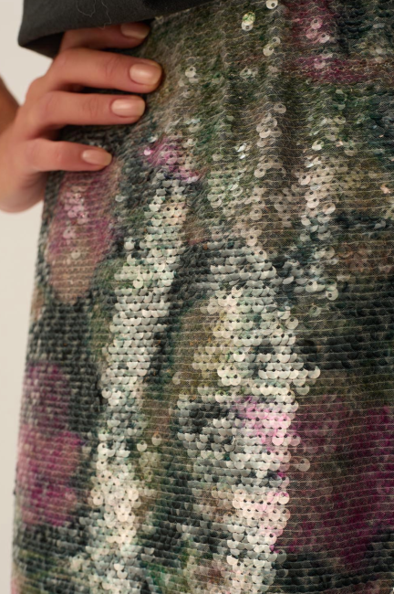 • Jupe en sequins imprimé floral