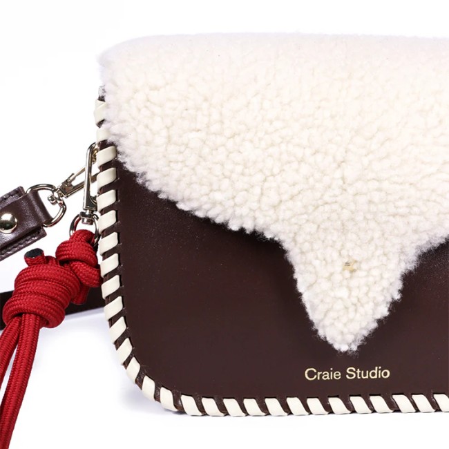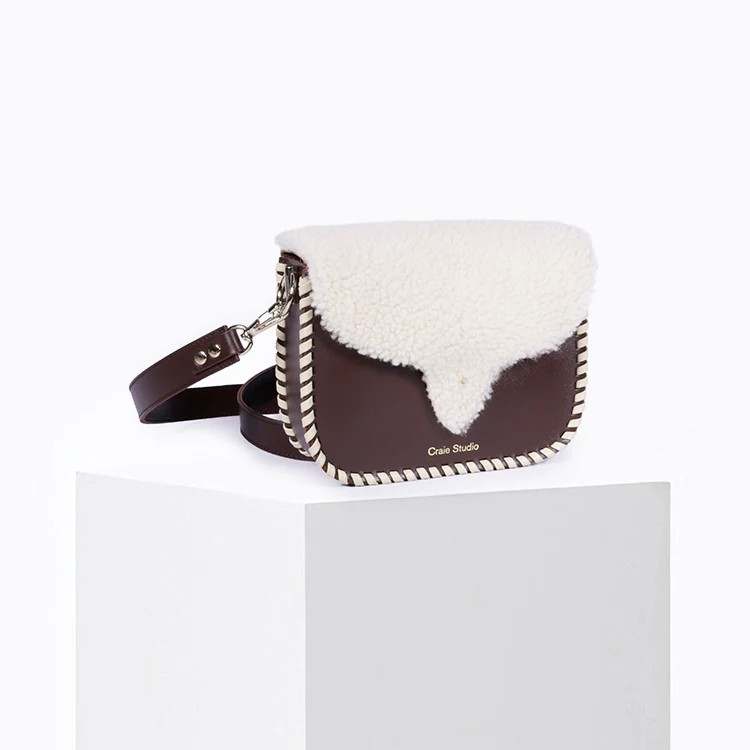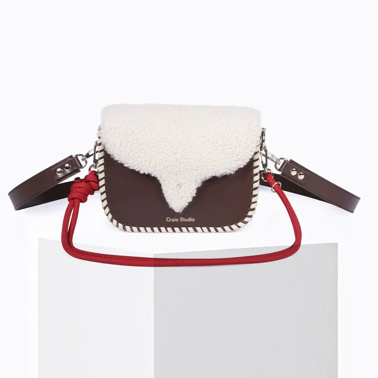 Le West Laine Choco, et sa version plus grande Wish, revisitent l’esprit western avec une touche de chaleur et de texture. Ce modèle marie un cuir de veau rigide chocolat profond à un rabat en laine naturelle, apportant une esthétique à la fois authentique et originale.