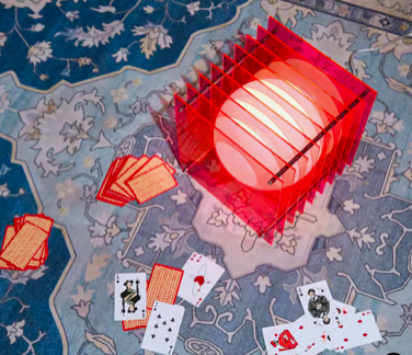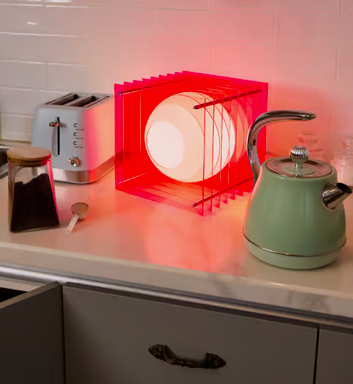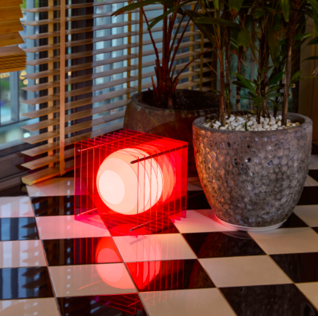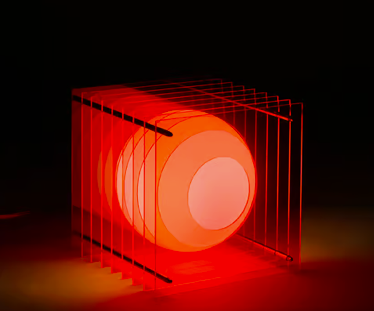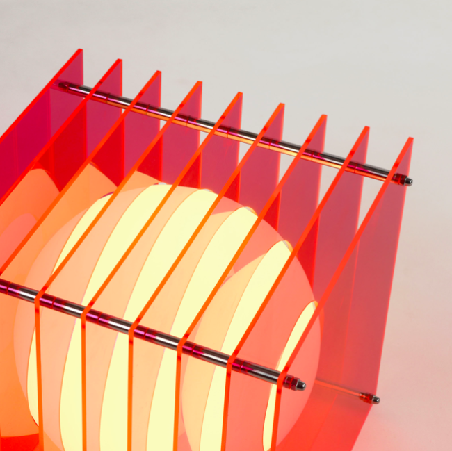 Cette lampe sculpturale donne lieu à un jeu de lumière hypnotisant. Lop se compose d’une sphère en verre blanc opalin qui semble flotter au milieu de strates en acrylique. Lop offre un surprenant effet visuel grâce au jeu de volumes emboîtés. Lorsqu'elle est allumée, les reflets de la sphère se matérialisent sur la rangée de plaques en acrylique, donnant une impression de mouvement. Même si la sphère est statique, ses multiples reflets donnent l’illusion que la sphère est animée de mouvements.