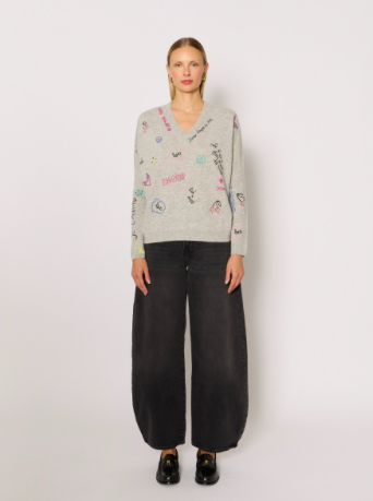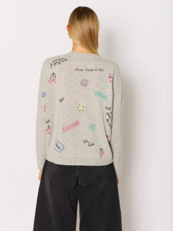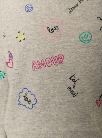 MYNEWEVERYDAY - Pull large en laine col V avec broderies intégrale - Bérénice