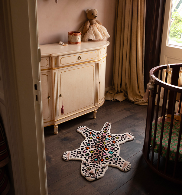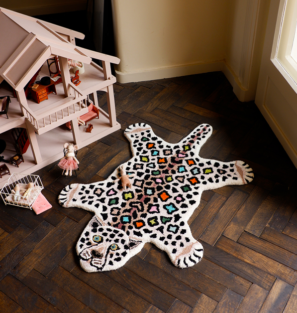 Inspirés par l'univers coloré de l'emblématique concept store familial français Bonton, nous avons créé cette toute nouvelle version de notre best-seller, le tapis Loony Leopard. Ce tapis tufté à la main en 100% laine est disponible en 3 tailles différentes : Small, Large et XL. Et le plus beau ? Il convient aussi bien à votre salon qu'à la chambre de votre enfant