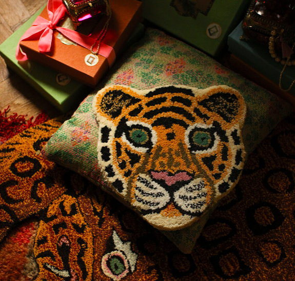 Le tapis tête Cloudy Tiger fait partie de notre propre collection Tapis Amis ; une gamme décalée d’adorables créatures du règne animal qui vous donneront le sourire. Ce tapis est fabriqué à la main, en Inde. Il est composé à 100 % de laine et doublé en coton.