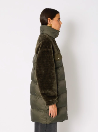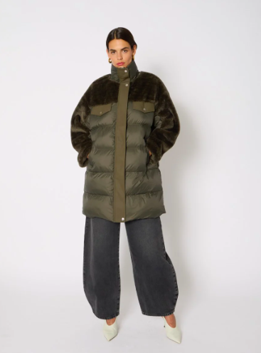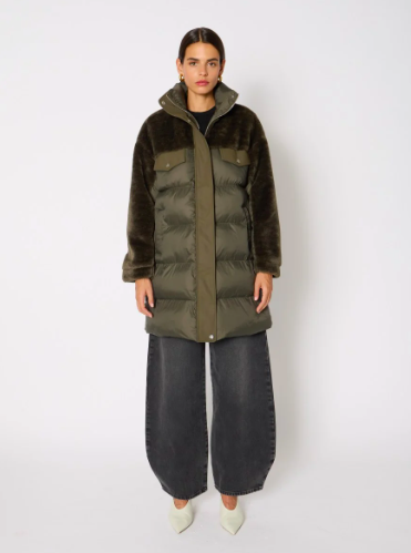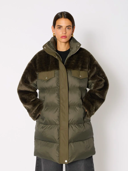 La parka MONA associe chaleur, confort et modernité. Conçue dans une coupe longue protectrice, elle se distingue par son jeu de matières contrastées et sa fausse fourrureultra douce, apportant relief et modernité. Son col montantenveloppant vous protège efficacement du froid tout en stylisant la silhouette. À porter avec un jean ou un pantalon large pour une allure casual-chic.