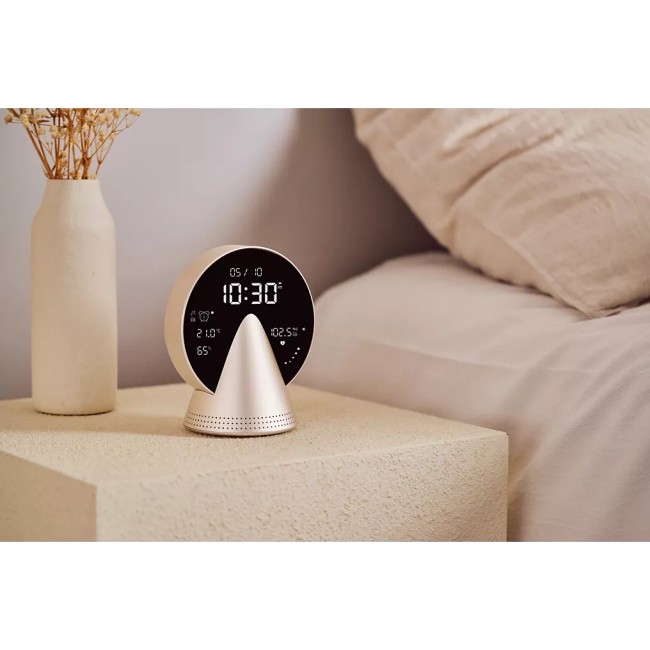 Le Conic Clock est bien plus qu'un simple radio réveil. Il intègre une enceinte Bluetooth® pour diffuser votre musique préférée et une radio FM pour écouter vos stations favorites. Grâce à ses commandes tactiles intuitives, vous pouvez facilement basculer entre les modes Bluetooth® et radio FM. Programmez deux alarmes distinctes pour vous réveiller avec une station de radio ou des mélodies apaisantes et des sons naturels. Alimenté par USB-C, ce radio réveil est conçu pour s'adapter à votre rythme de vie moderne, avec une luminosité d'écran ajustable pour un confort visuel optimal.