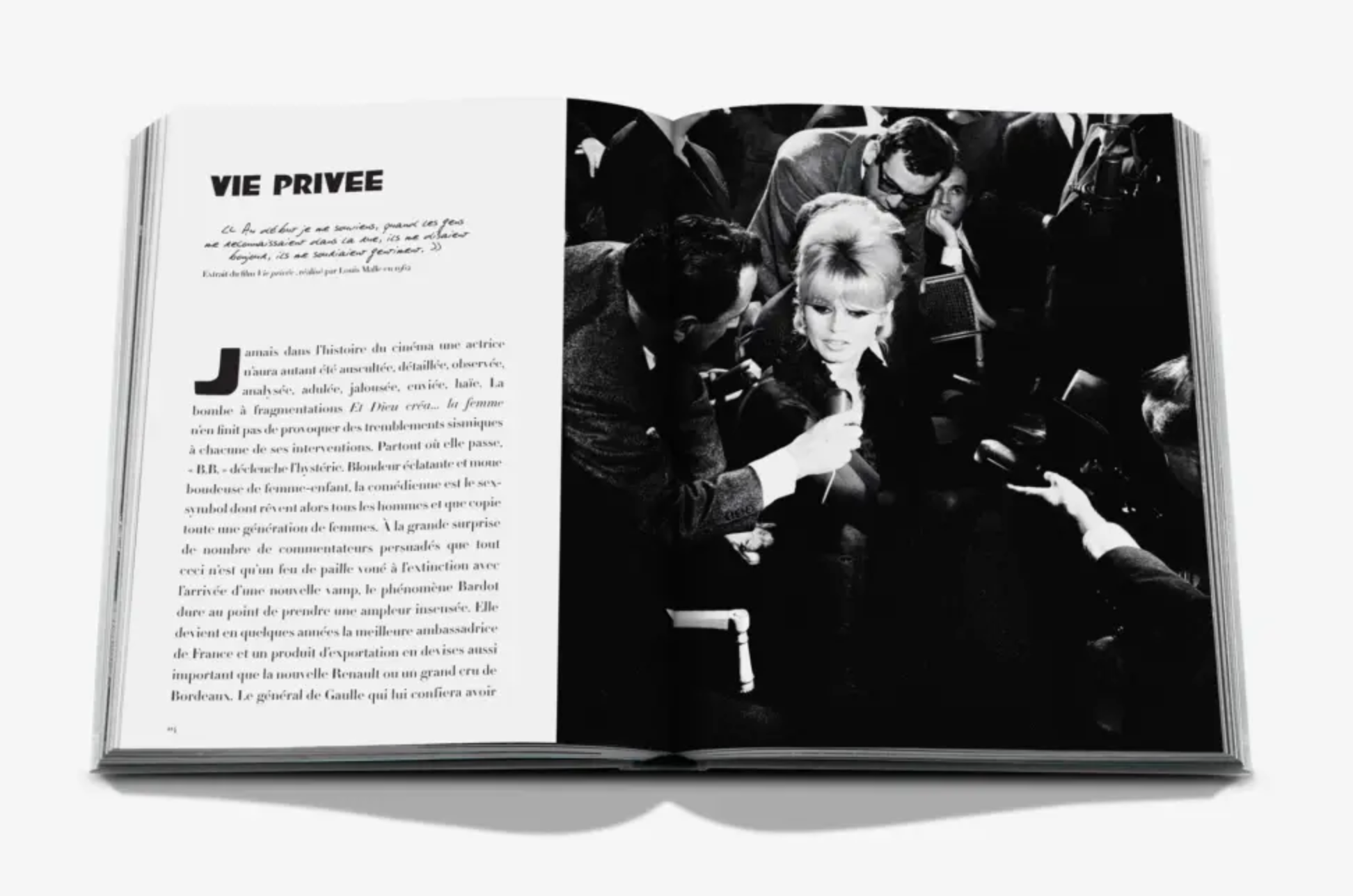 En collaboration avec Bardot elle-même, l’écrivain français Fabrice Gaignault — qui la connaît depuis son enfance grâce à la forte amitié entre ses parents et l’actrice — crée un récit sans filtre qui donne vie à ces images évocatrices, enrichi par les mots et les réflexions de l’actrice, qui revisite les photographies à ses côtés. Sa voix, tendre et libre, résonne au fil des pages, ajoutant émotion et sincérité à ce portrait intime.