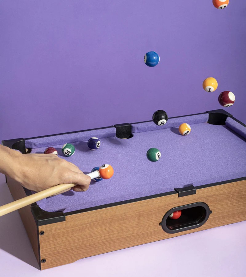 Le mini billard de table est le jeu unique qui métamorphosera votre salon en une salle de jeux exceptionnelle ! De plus, il sert d'authentique élément décoratif, avec son format compact et ses teintes éclatantes qui attirent instantanément tous les regards.