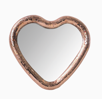 Ce miroir cœur à facettes est une pièce décorative forte, à la fois ludique et iconique. Sa forme cœur, douce et expressive, est sublimée par un encadrement effet mosaïque façon boule à facettes rose, qui capte et reflète la lumière avec élégance.