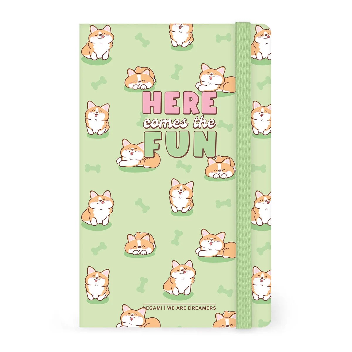 Alignez vos notes, vos pensées et vos attaques subites d'inspiration sur votre Carnet Ligné Medium Legami : une couverture sur le thème Green Corgi et 164 pages qui n'attendent que vos écrits.