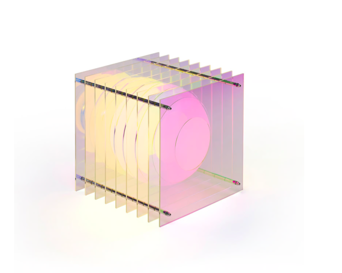Signée du designer français Thomas Vincent pour la marque Bang, la Lop Dreamy Small Square se compose d’une sphère en verre opalinflottant au cœur de plaques d’acrylique translucides fixées par des éléments en inox. Ses nuances multicolores évoluent selon l’angle et l’intensité lumineuse, créant une atmosphère presque cinétique. Chaque pièce traduit l’excellence du design vietnamien contemporain, entre minimalisme et sophistication.