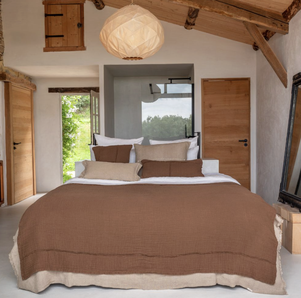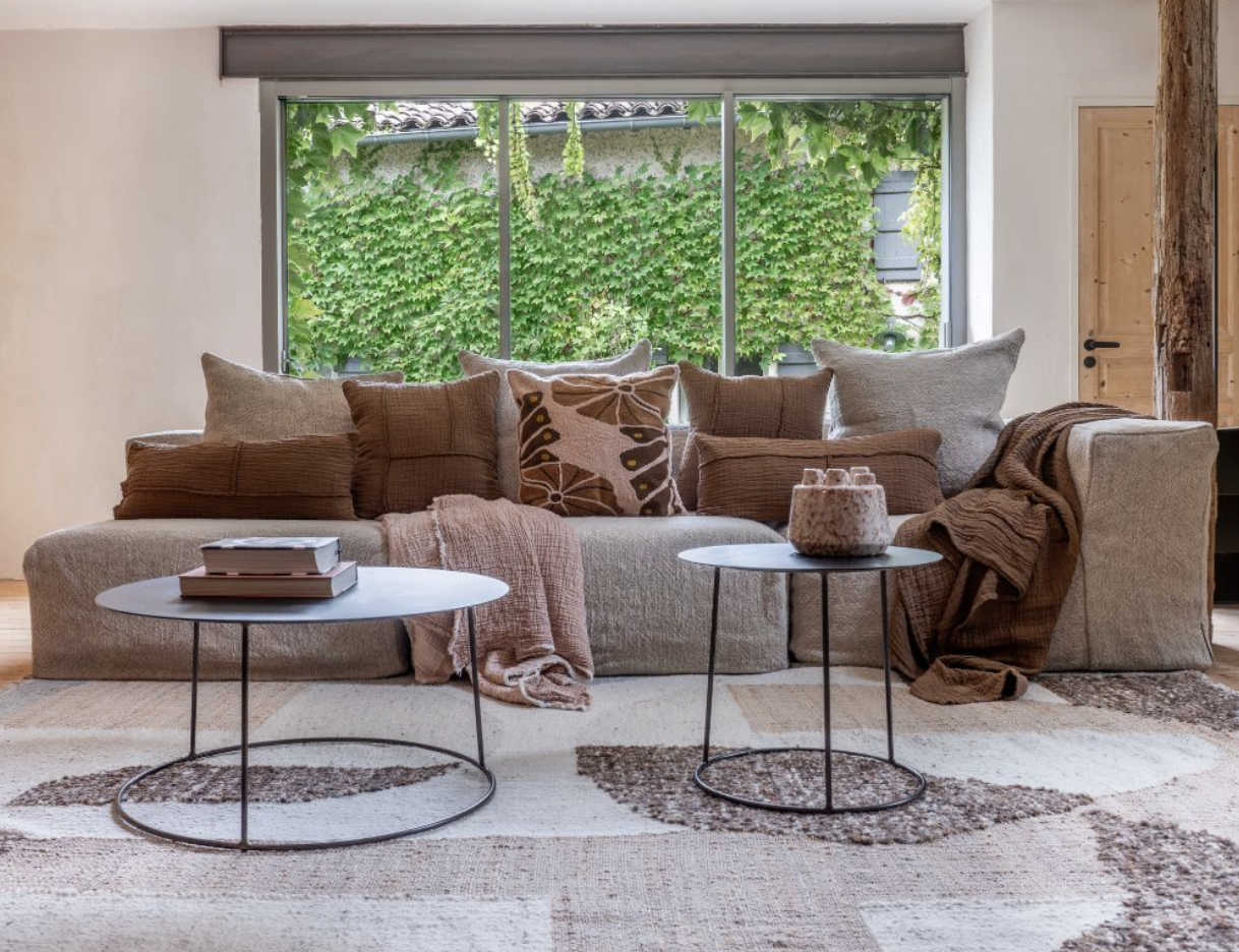 Conçu dans un mélange de coton et de lin, le coussin NIRVANA se distingue par un empiècement de patch, assemblé par des bords francs structurant le tissu. Ce détail artisanal sublime le coussin d’un effet vintage à la fois intemporel et authentique.