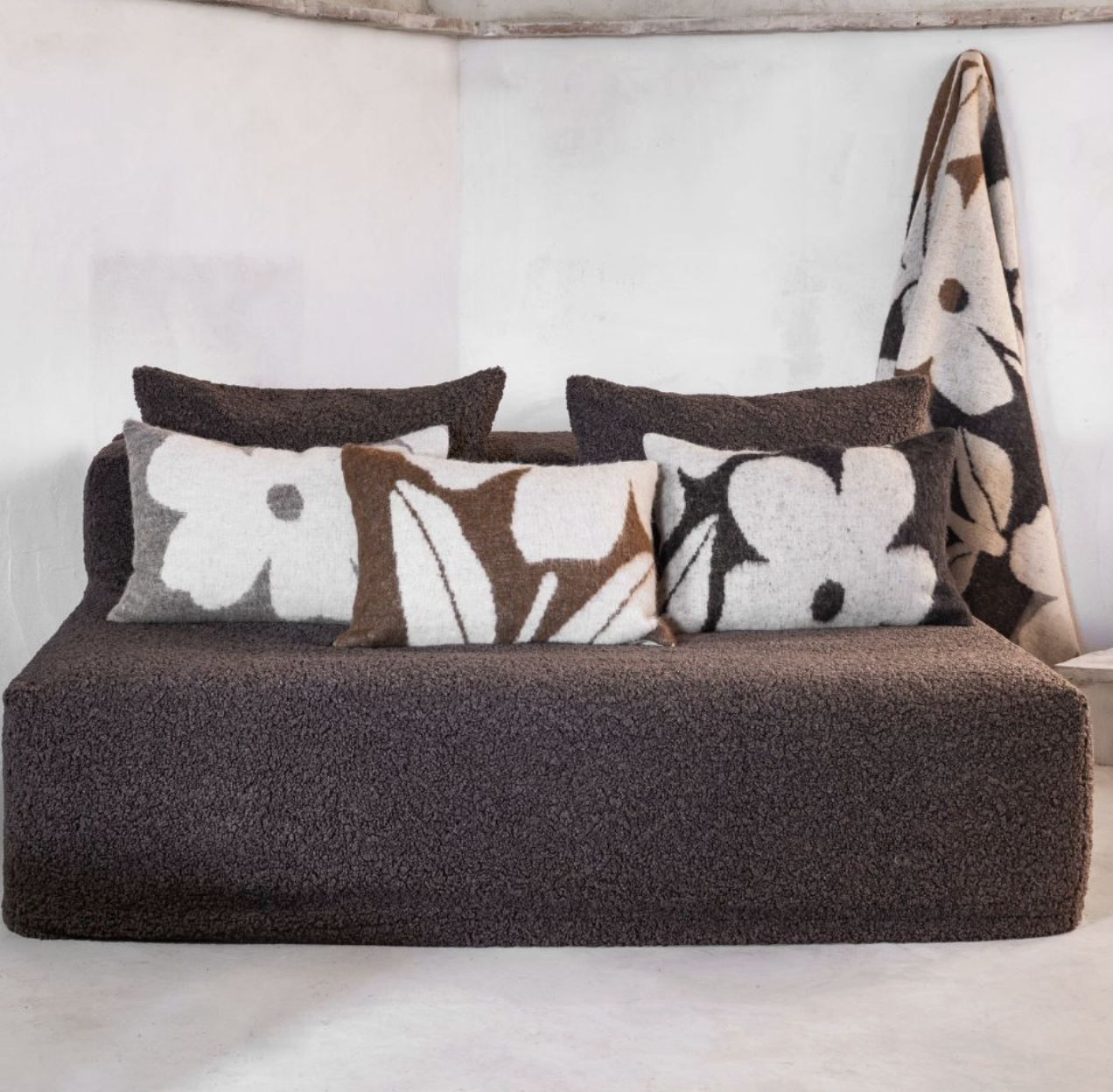 Coussin en laine à motifs fleuris