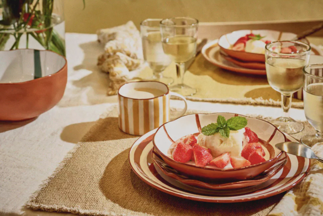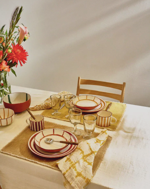Articulée autour de trois couleurs : vert, jaune et rouille, la collection de vaisselle Mykonos vous permettra de créer toutes sortes de combinaisons vitaminées. . . De quoi apporter du soleil dans vos tables.