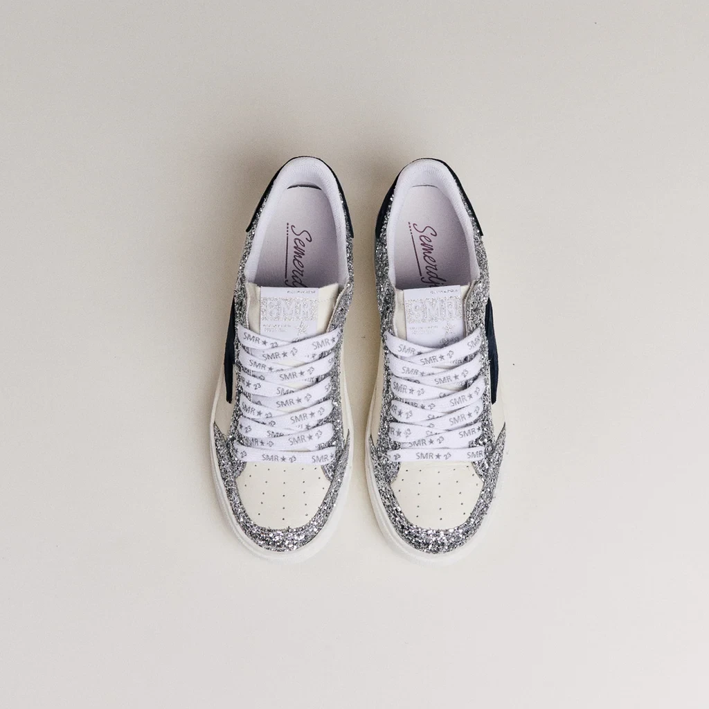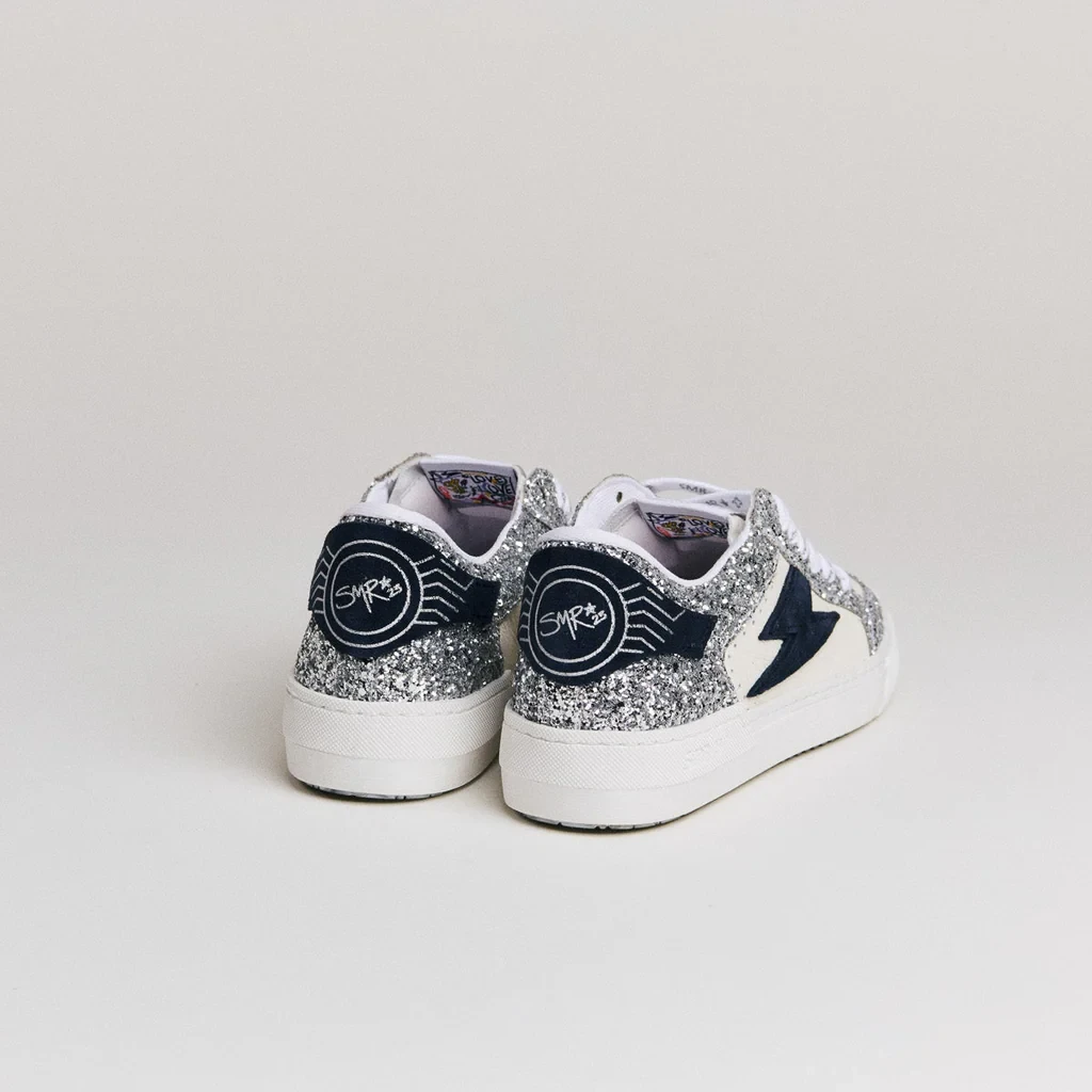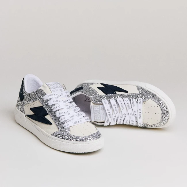 Matières : Cuir lisse, Croûte de cuir (daim), Glitter et Tissu.