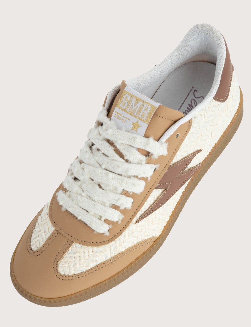 Baskets Basses Emily D506 Blanc Tressées Marron de chez Semerdjian