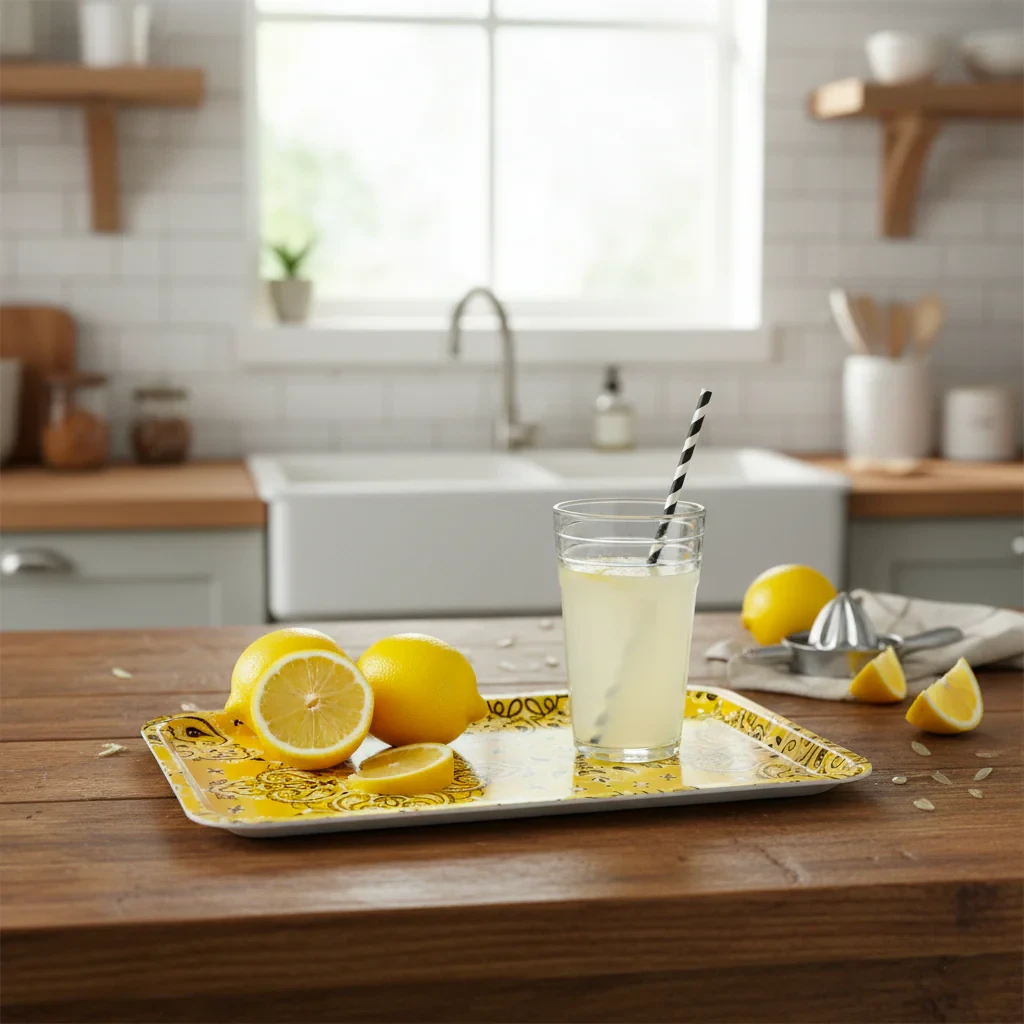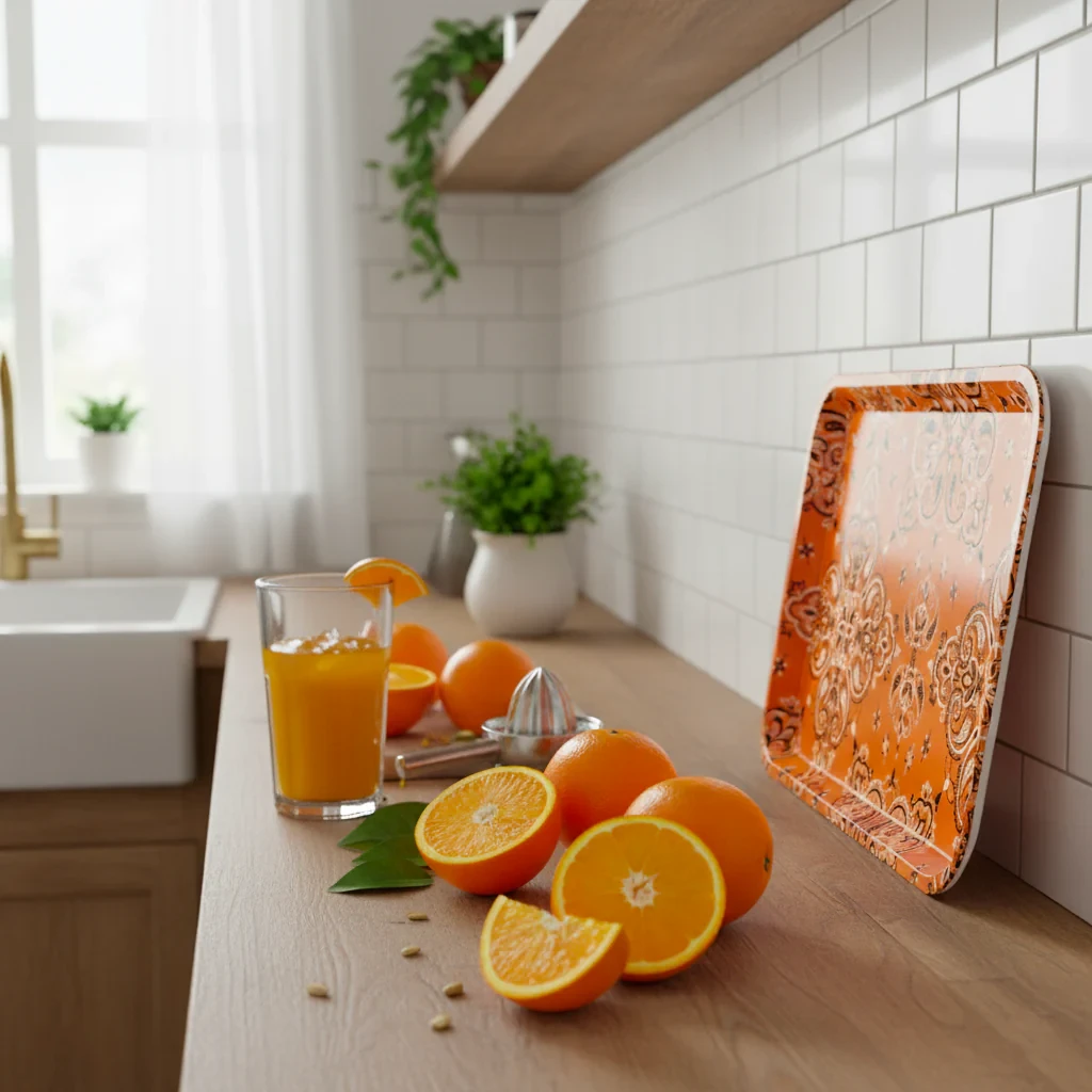 Notre plateau bandana invite la bonne humeur à table : son motif bandana recto-verso, toujours net après lavage, reste visible même posé comme accessoire décoratif. Entre look rétro et design simple, il se fond autant dans une ambiance aussi bien au salon qu'en cuisine.