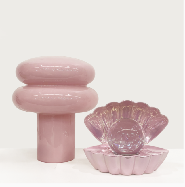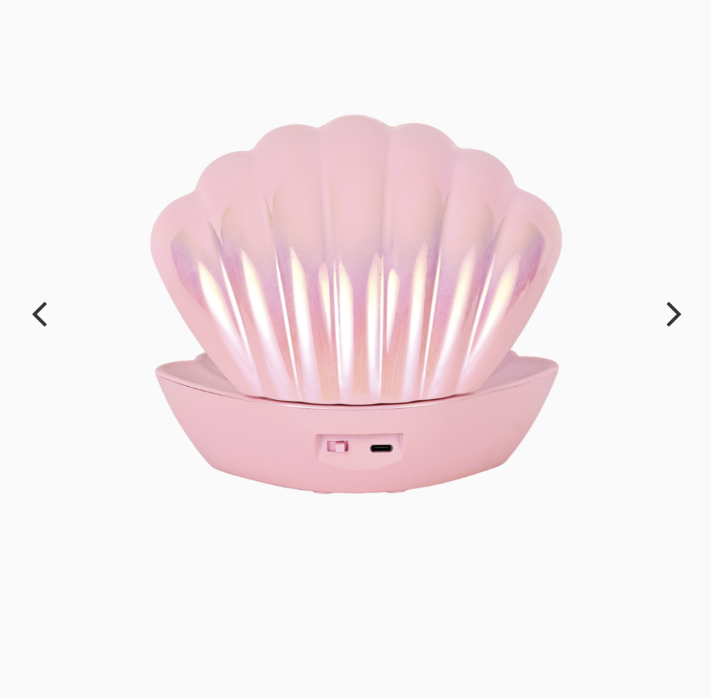 Cette lampe en forme de coquillage, remplie de paillettes , s’anime d’une douce lumière.