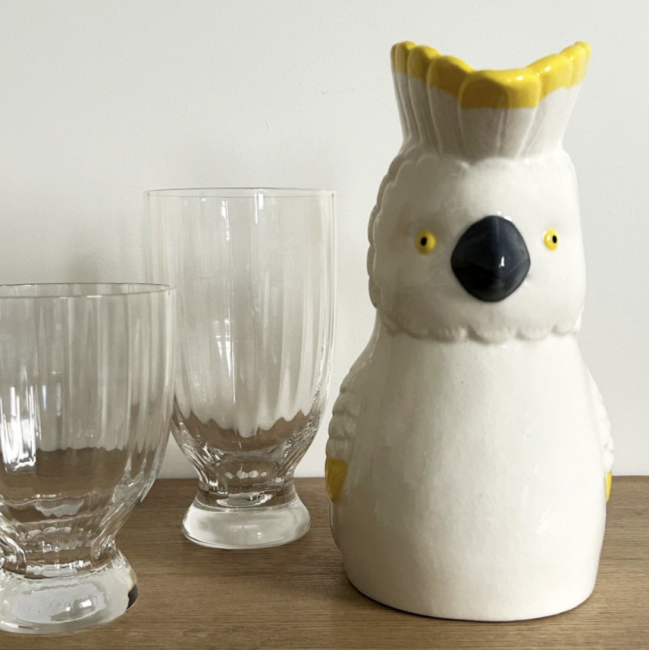 Ce magnifique pichet décoratif perruche est une véritable ode à l’été et à la convivialité.