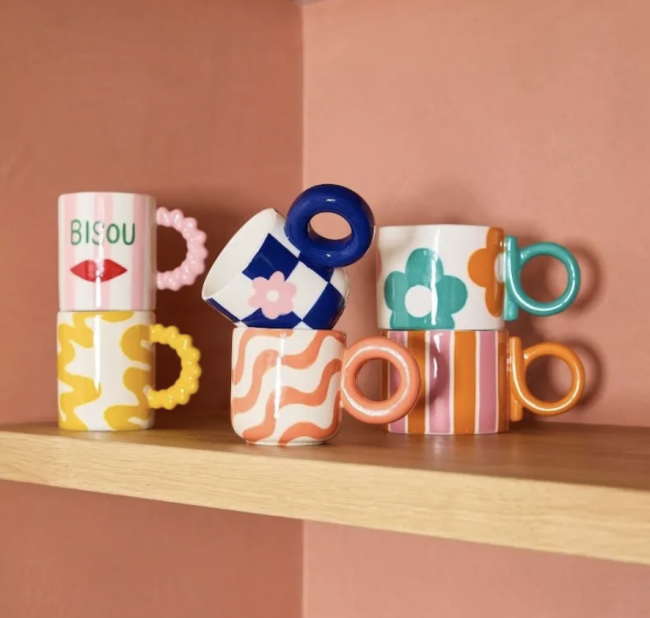 Cette tasse avec une hanse à la forme originale apportera de la fantaisie et de la couleur à votre intérieur !