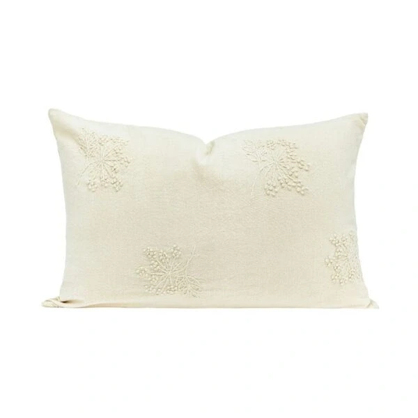Coussin brodé en coton flammé 40x60 cm DOMINGO Naturel