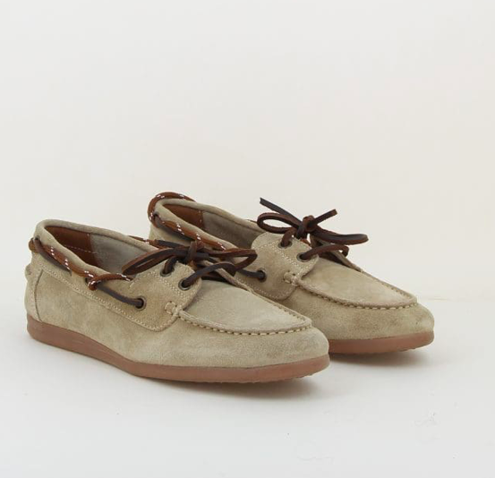 Ce mocassin femme Semerdjian en cuir nubuck beige séduit par son style élégant et décontracté, inspiré du mocassin bateau. Conçu entièrement en cuir, aussi bien à l’extérieur qu’à l’intérieur, il offre un excellent confort et une grande qualité de finition. Son double laçage apporte une touche originale et tendance, avec des lacets en cuir marron associés à un lacet effet corde couleur camel, renforçant son allure authentique et estivale. Polyvalent et facile à porter, ce mocassin en cuir nubuck s’adapte aussi bien à une tenue casual qu’à un look plus habillé, faisant de lui un incontournable du dressing.