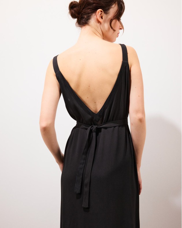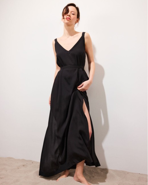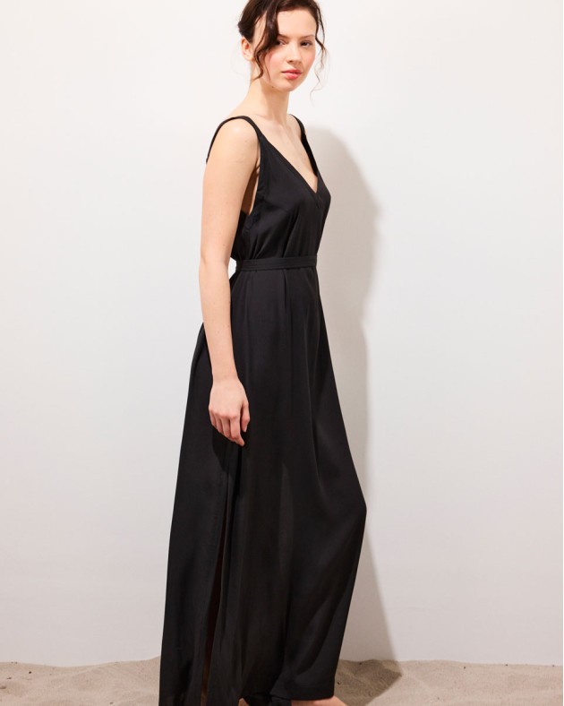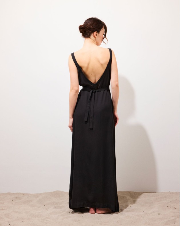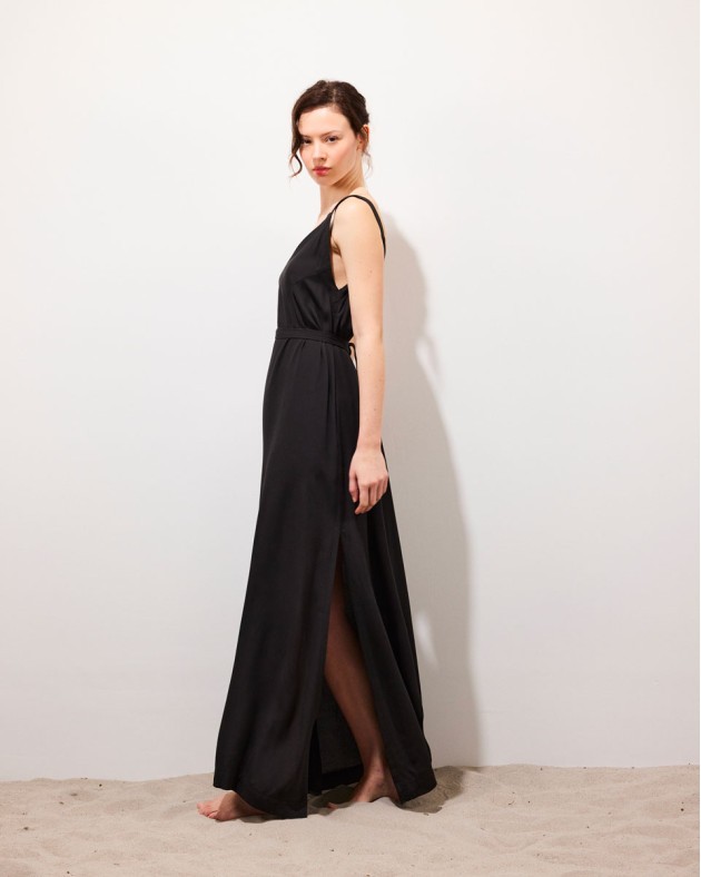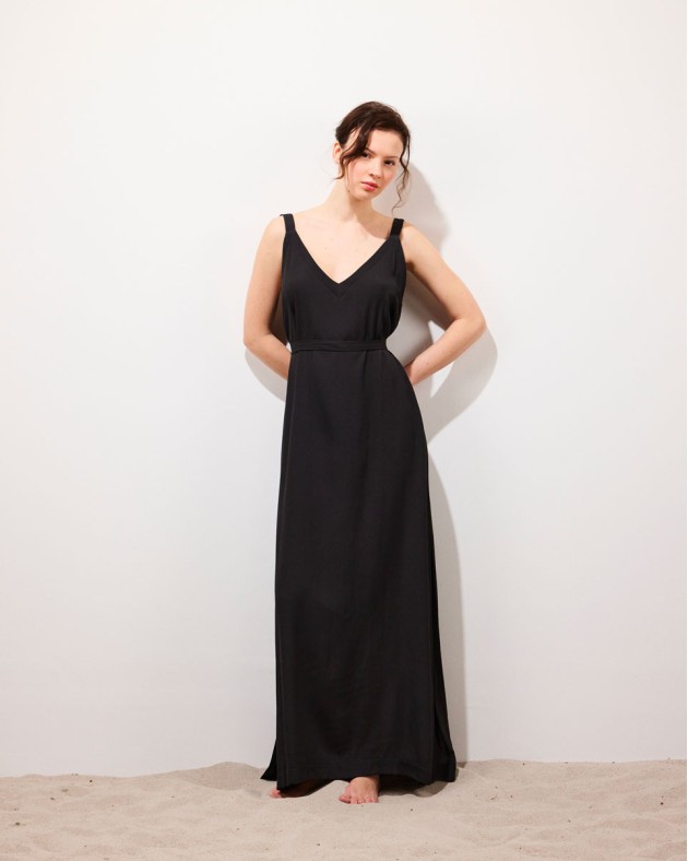 DEA est une robe longue à bretelles à la coupe droite et fluide, pensée pour accompagner les journées d’été sans contrainte. Son décolleté en V sur le devant s’équilibre avec undos plus profond, révélant la peau avec justesse et naturel. La matière en rayonne apporte un tombé souple et léger, agréable à porter même sous la chaleur. Grâce à sa ceinture indépendante ton sur ton, la silhouette se module : fluide et décontractée ou plus structurée à la taille. Que ce soit pieds nus, en sandales ou légèrement accessoirisée, elle traverse la journée avec aisance. Une robe essentielle, libre et solaire, fidèle à l’esprit Karma Koma.