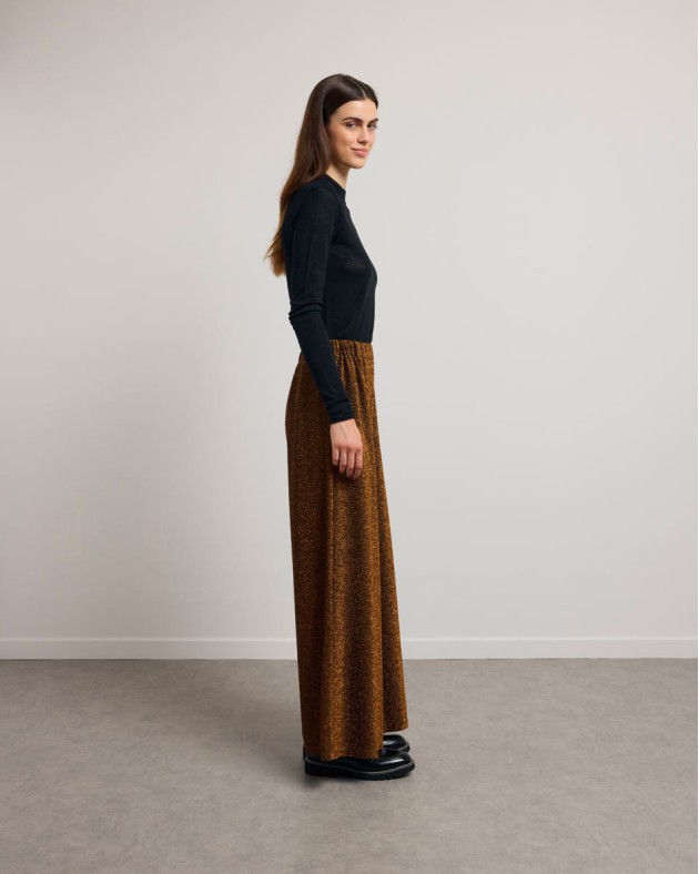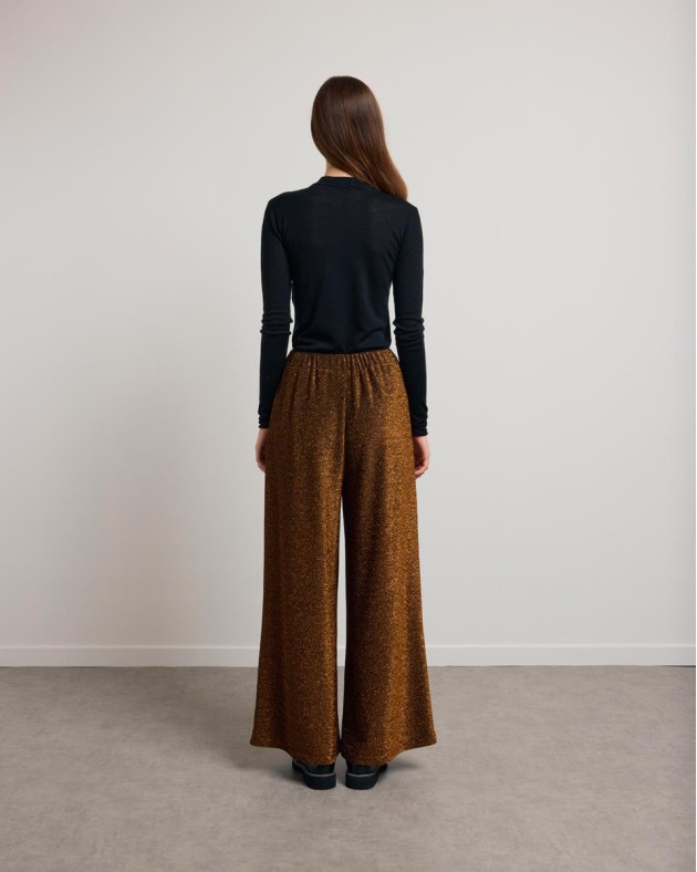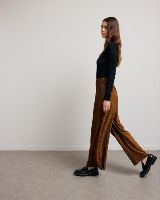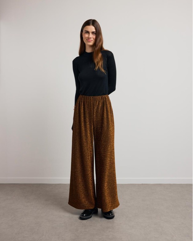Le pantalon DISCO est confectionné dans une matière fluide irisée, qui capte la lumière à chaque mouvement. Sa taille élastiquée assure un confort parfait, tandis que sa coupe longue et fluide allonge la silhouette. Pensé comme une pièce forte du vestiaire, il se porte aussi bien en journée décontractée qu’en version soirée. À associer à une maille oversize pour une allure décontractée, ou au top ROBERTO en maille irisée pour une silhouette plus pop et assumée.