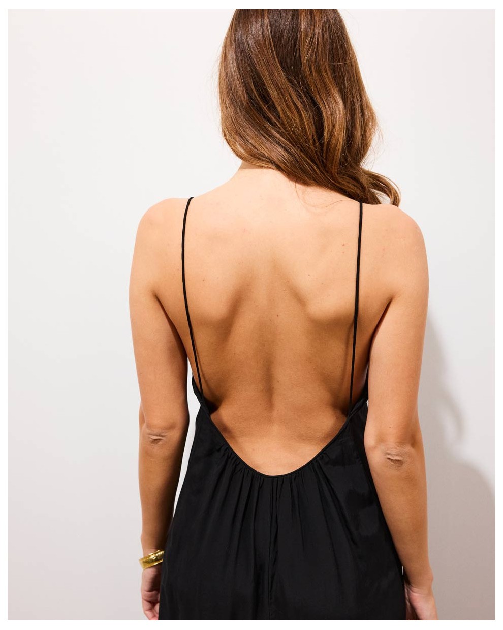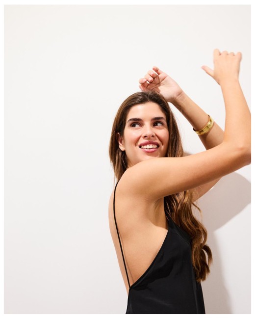 BLAKE est une robe longue dos nu à bretelles qui épouse les formes du corps avec fluidité et naturel. L’encolure en V à l’avant équilibre la silhouette, tandis que le dos ouvert jusqu’à la taille dévoile la peau avec élégance. Les fronces le long de la couture dos accompagnent le mouvement et adoucissent la ligne, tandis que la fente au dos apporte de l’aisance à la marche. Confectionnée en rayonne, elle offre un tombé soupleet sensuel. Une robe magnétique et affirmée, pensée pour une allure libre et intensément féminine.
