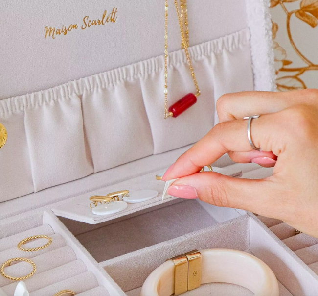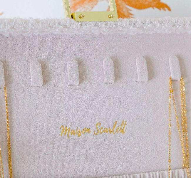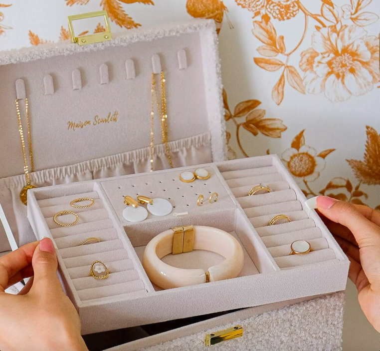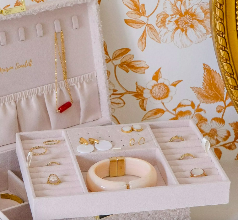 Notre boîte à bijoux Denise est notre plus grand modèle à ce jour et celui qui convient le mieux à la plupart des amatrices de bijoux.