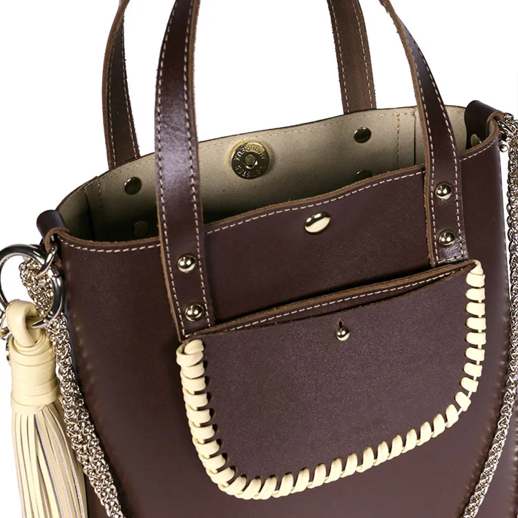 Son petit plus signature : une poche décorée d’une couture en cuir Vanille, accompagnée d’un pompon en cuir assorti, qui apporte contraste, douceur et caractère à ce modèle emblématique.