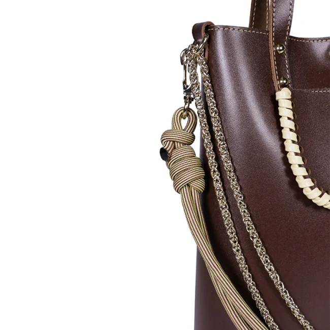 – une bandoulière en corde d’escalade Rayon, plus sporty chic, pour une silhouette décontractée et moderne.