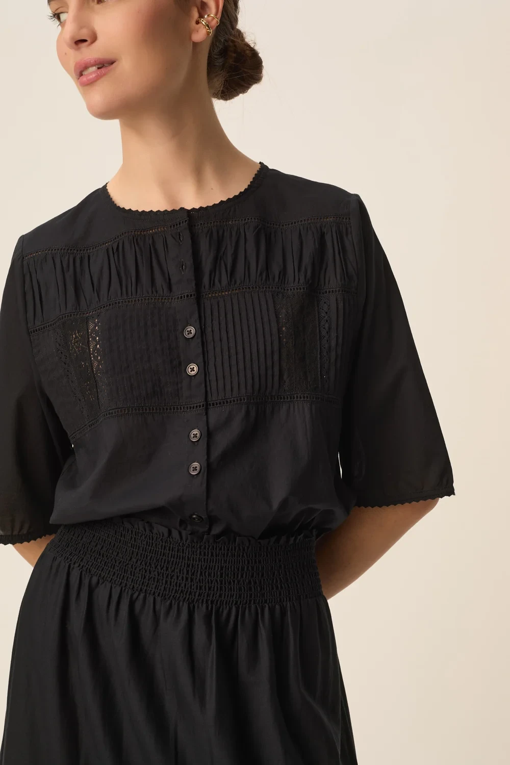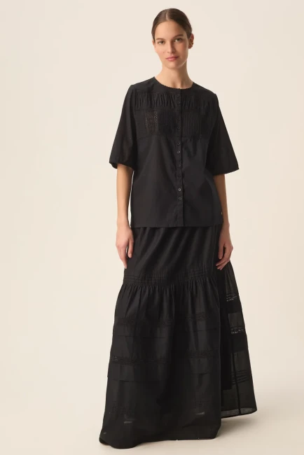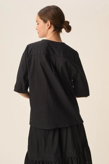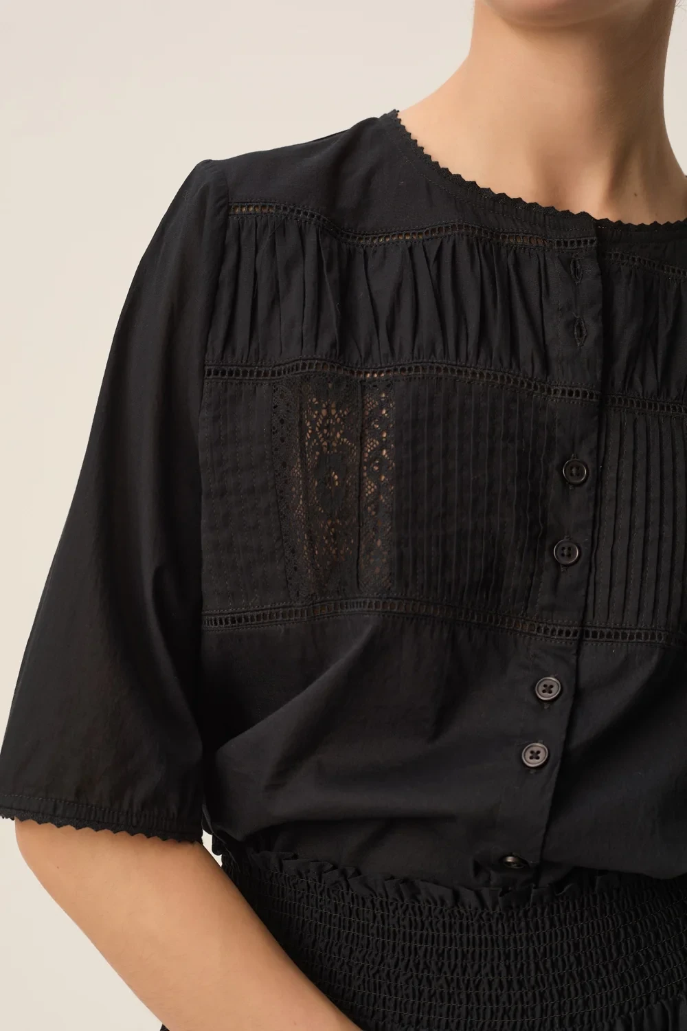 Avec son jeu de plis piqués, ses découpes précises et sa dentelle délicate, la chemise en voile de coton Salem offre une lecture moderne du style bohème chic. Coupe droite équilibrée par un volume travaillé, cette chemise élégante, légère et facile à porter vous accompagnera printemps comme été.