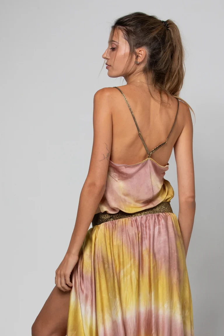 Laissez-vous séduire par le débardeur Tosca, une pièce chic et légère pensée pour vos tenues estivales. Ses bretelles dorées et son décolleté en V apportent une touche raffinée et féminine, tout en mettant en valeur la silhouette avec élégance.