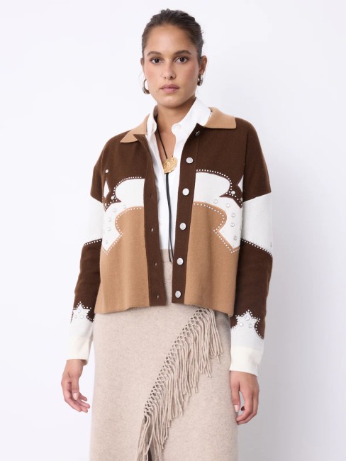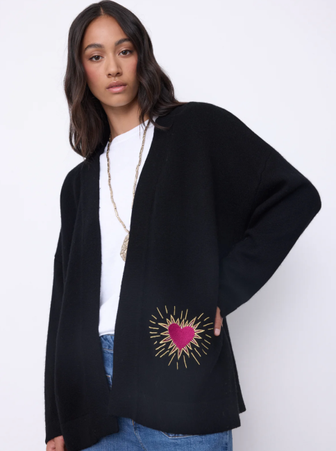 Cardigan en laine col V avec poches plaquées et ailes en strass - Bérénice