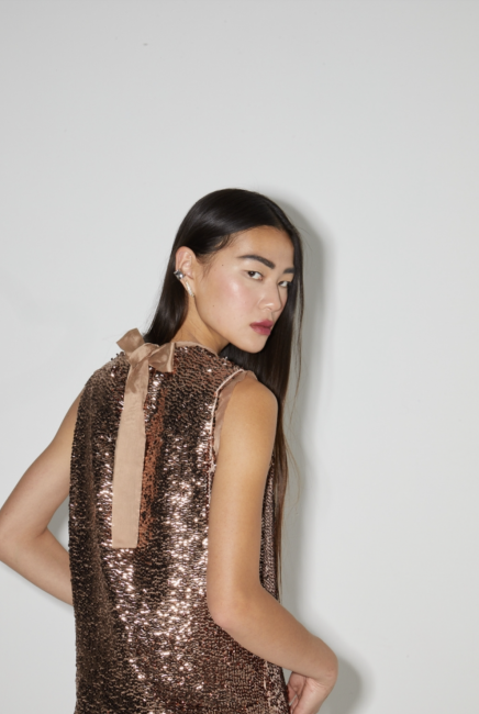 Top Foxy en sequins bronze