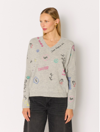MYNEWEVERYDAY - Pull large en laine col V avec broderies intégrale - Bérénice