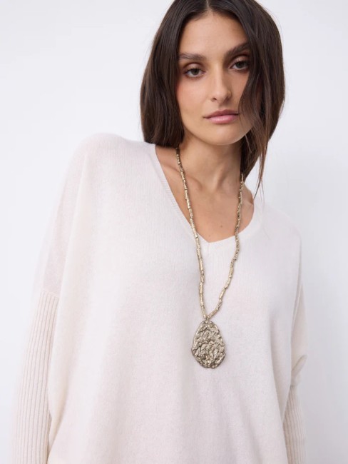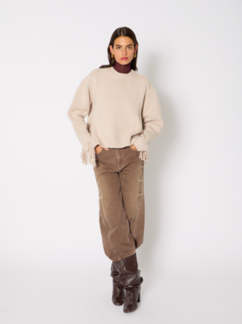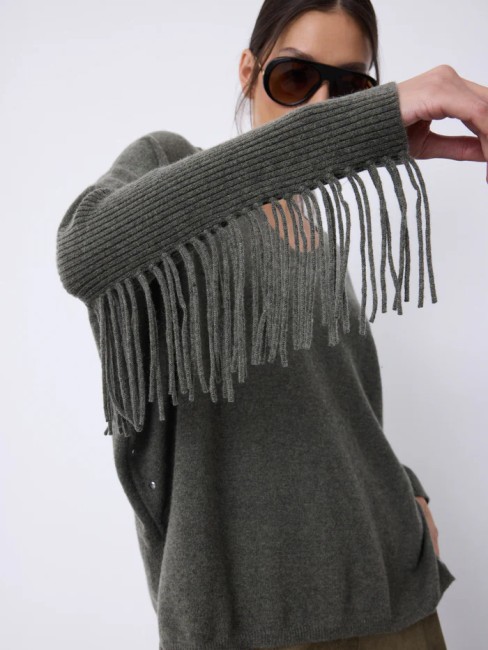 Pull en laine à manches longues, avec fentes et détails franges - MYFRINGES - Bérénice